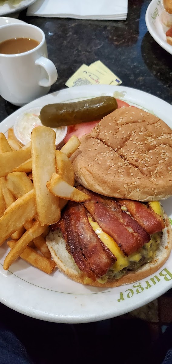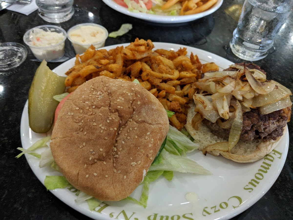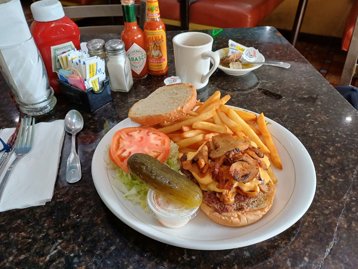 Amazing local diner vibe not overrun with tourists. Fast and efficient energy (in the best way possible). Extensive menu. French onion soup and the pizza burger were pretty good. Wish the fries were crispier. Feels like you’re transported to the 70s/80s. Very refreshing establishment.